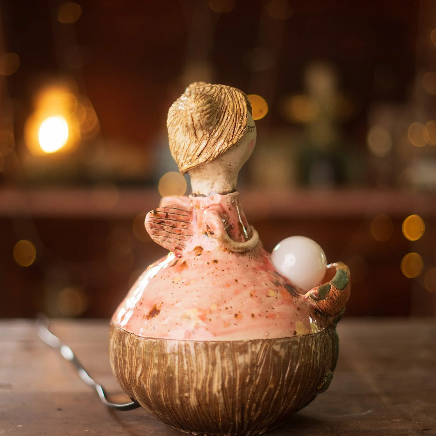 Made from stoneware clay this fairy lamp is approx 30 cms tall.